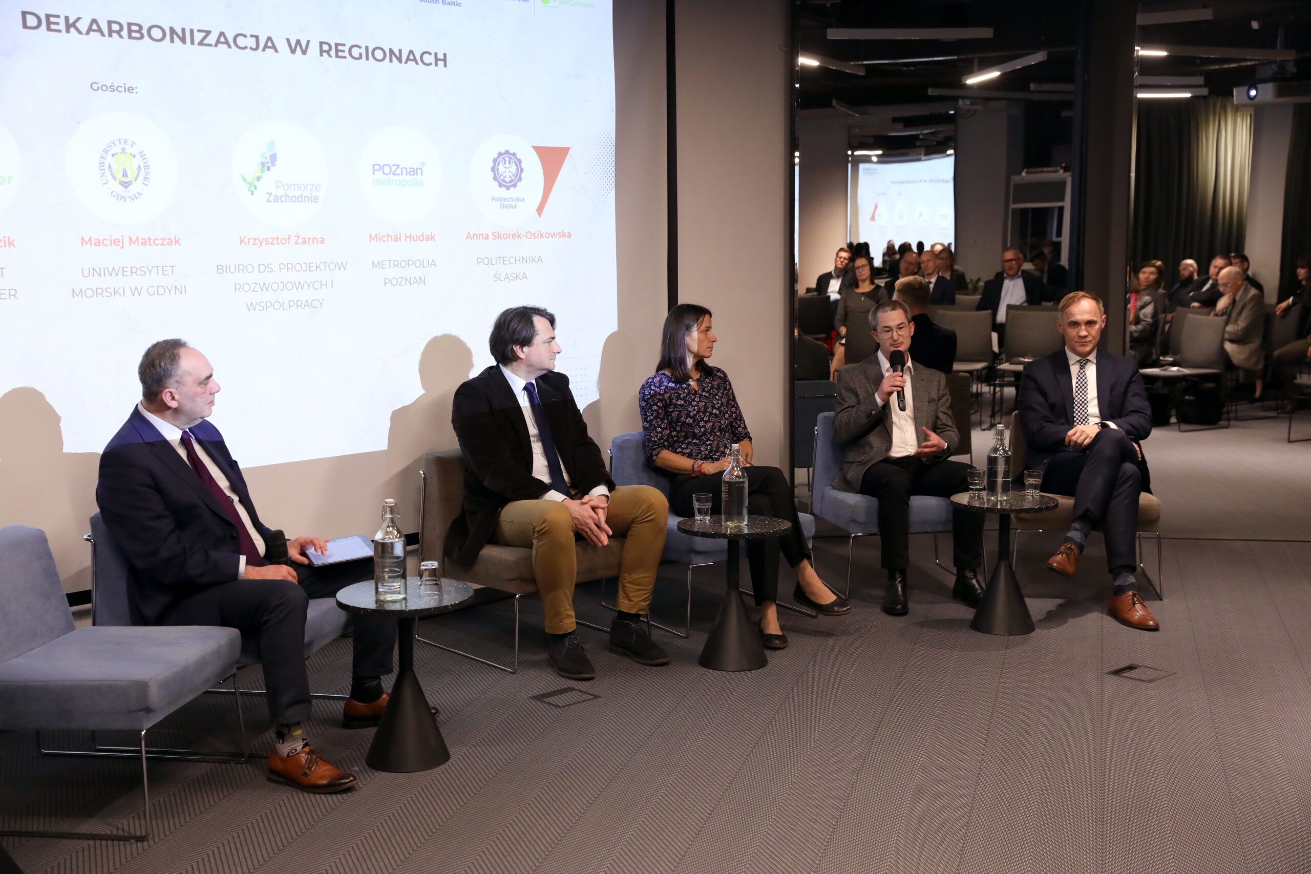 W drugiej części konferencji uwaga została skierowana na dekarbonizację, zarówno w kontekście najnowszego projektu Stowarzyszenia (,,Decointer- Decarbonization of Maritime Sector and Its Impact on Green Energy Transition’’), jak i dużej wagi tego zagadnienia w poszczególnych regionach naszego kraju z punktu widzenia ich przedstawicieli. W temacie rozwoju infrastrukturalnego region pomorski mógł się pochwalić najnowszymi inwestycjami w morskie farmy wiatrowe i Gazoport w Gdańsku (poprzez pływający terminal FSRU – Floating Storage and Regasification Unit), które stanowią naszą kluczową infrastrukturę krytyczną jeśli chodzi o bezpieczeństwo narodowe. W panelach przytoczone zostały również inne bardzo ważne zagadnienia dla Pomorza , jak budowa terminala intermodalnego na terenie Centrum Logistycznego Portu Gdynia, budowa terminala zbożowego w Porcie Gdańsk, planowana elektrownia jądrowa na Kaszubach, gdyńska Droga Czerwona, modernizacja linii kolejowej 201 czy budowa Portu Zewnętrznego w Gdyni. Całe wydarzenie zamykał panel dotyczący lotnictwa w regionach, podczas którego poruszono przede wszystkim kwestie zastosowania dual-use lotnisk w świetle obecnej sytuacji geopolitycznej. Dyskutowano o progresie w przewozach pasażerskich na lotniskach w Gdańsku, Bydgoszczy i Katowicach, jak również o przewozach cargo. Przedstawiono plany rozwojowe na najbliższe lata oraz opisano jak infrastruktura poszczególnych lotnisk będzie mogła być wykorzystana do wzrostu bezpieczeństwa kraju w kontekście dual-use.